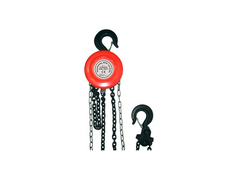 Se dvěma háky a blokovacím systémem. Určen ke zvedání břemen v garáži, zemědělství, v lese, průmyslu, zahradě,..
