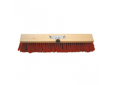 Metla se štětinami z elastanu na zametání drsných podlah, záda košťata z neošetřeného bukového dřeva, pozinkovaný kovový držák násady.