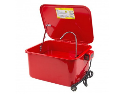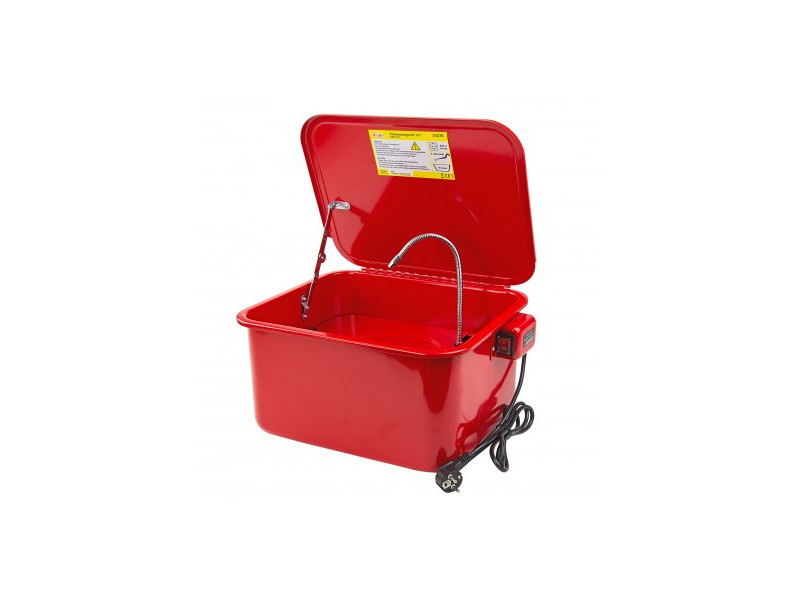 Myčka na čištění součástek a agregátů o objemu 13 l. S flexibilní tryskou. Pevné víko. Vyjímatelná police pro uložení dílů. Čtyři protiskluzové pryžové nožičky. Vhodný pro všechny běžné čistící prostředky (schváleno pro elektricky poháněná čerpadla a bod vzplanutí >65 °C).