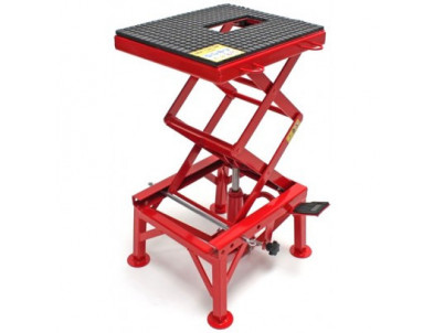 Zvedák na motorku je ideálním pomocníkem při jakýchkoli opravách motorky do 135 kg. Hydraulické zvedání, protiskluzová pryžová rohož, pedál na zdvih, celoocelová konstrukce.