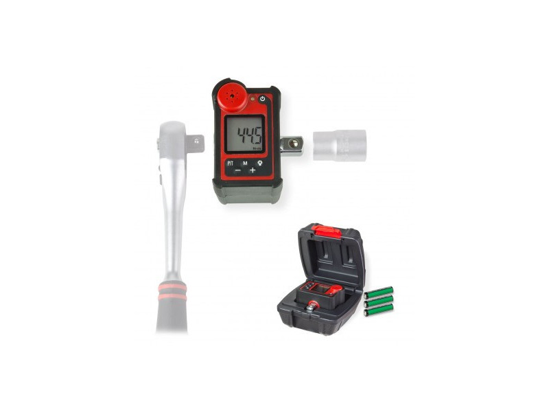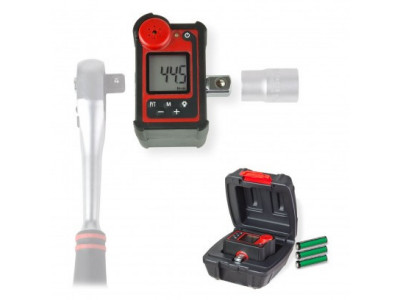 Digitální adaptér vhodný pro všechny typy 1/2" ráčnových utahováků. Navržen pro přesné nastavení krouticího momentu. Podsvícený LCD displej. Ovládání pravou/levou rukou. Automatické vypnutí po 80 sekundách. Zvukový a vizuální signál při dosažení nastavené hodnoty. 50 volně programovatelných hodnot (+/-). Dodáváno v praktickém plastovém