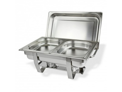 Ohřívač z ušlechtilé oceli se dvěma nádobami, určený k udržování teploty jídel, vhodný na party, rodinné oslavy, veletrhy a pod. Dvě nádoby na jídlo, jedna velká vana na vodu, dvě uzavíratelné nádoby na hořlavou pastu, kryt, dvě rukojeti na přenášení. Hořlavá pasta není součástí balení.
