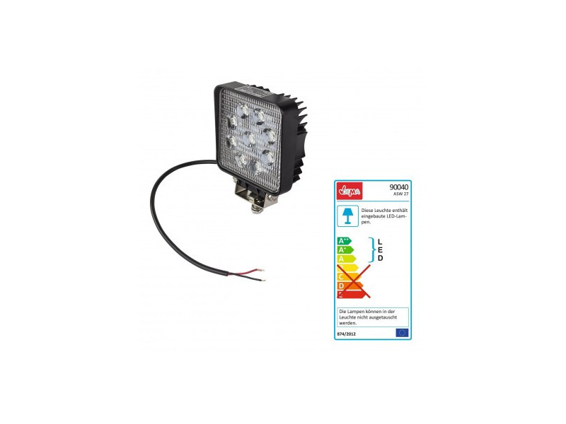 Pracovní LED světlomet s jasným a silným světlem, devět vysoce výkonných LED diod, s tělesem z tlakově litého hliníku, velké hliníkové chladící těleso, kryt reflektoru z plexiskla. Ideální úroveň osvětlení díky 60°/30° úhlu vyzařování/bodovému osvětlení. Držák a šrouby z ušlechtilé oceli.