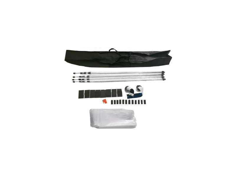 Stěna na ochranu proti prachu o rozměrech 4 x 10 m pro všechny prašné renovační a přestavbové práce. Ochrannou stěnu lze postavit během několika minut a ochrání prostor před prachem a nečistotami. Souprava obsahuje 2 lepící zipy, pomocí kterých se vytvoří jednotlivé průchody.