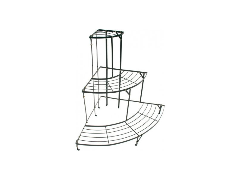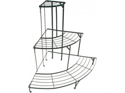 Rohový stojan na květiny se třemi policemi, vyrobený z práškově lakované oceli.