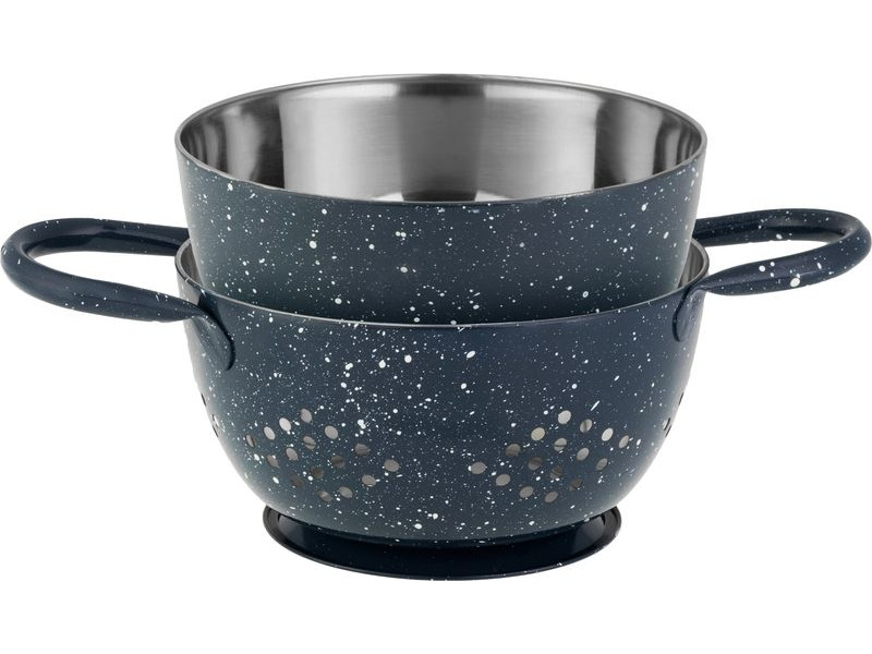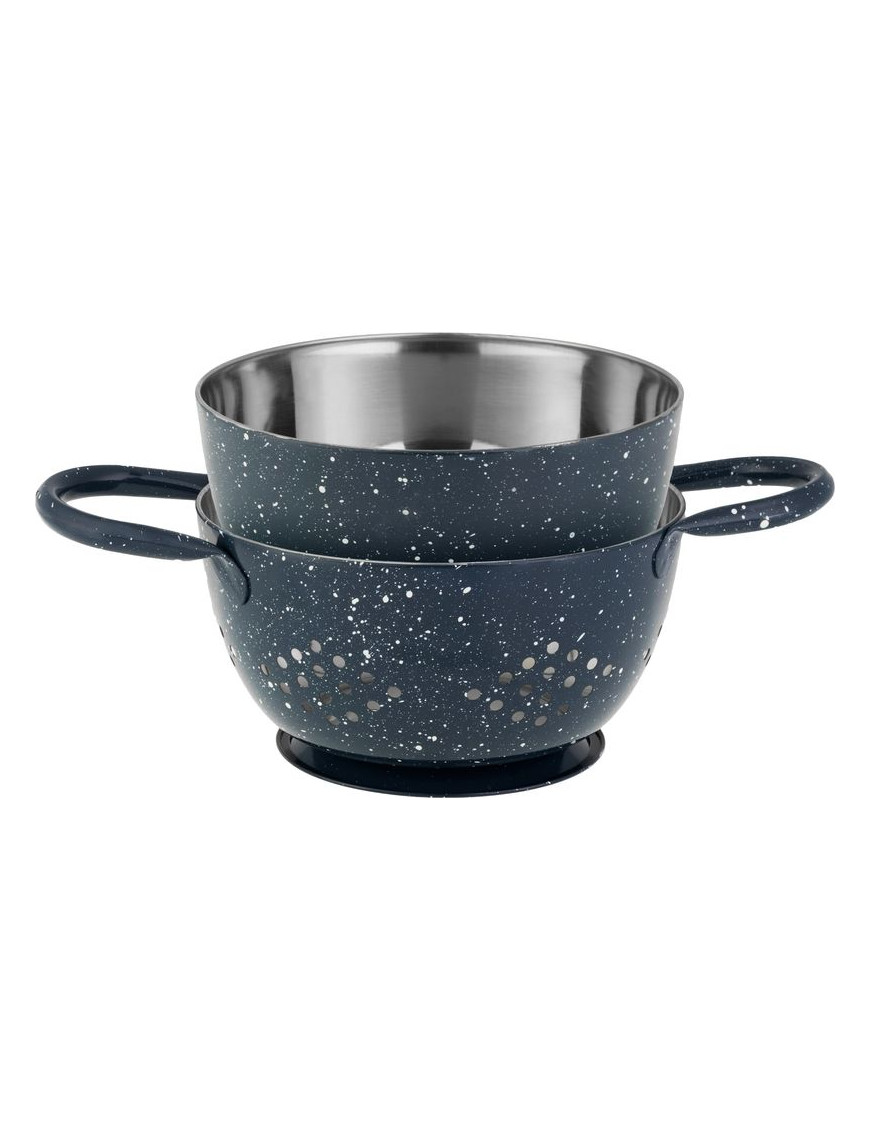 Cedník s misou MagicHome, 15,5 cm, s rúčkou, okrúhle otvory, nerez, sada 2 ks