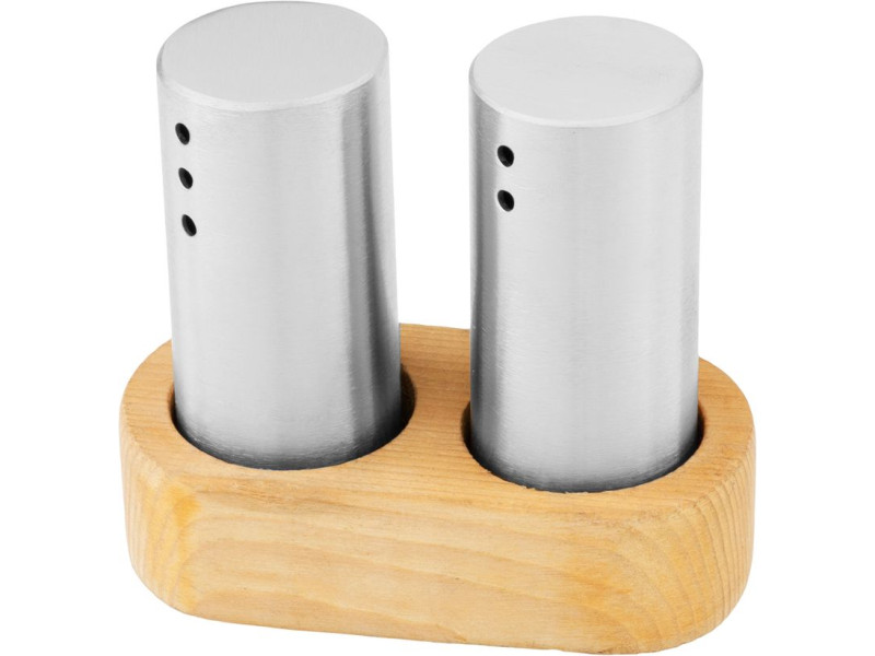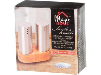 Sada solnička a korenička MagicHome, drevený stojan, nerez