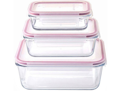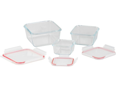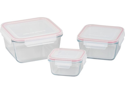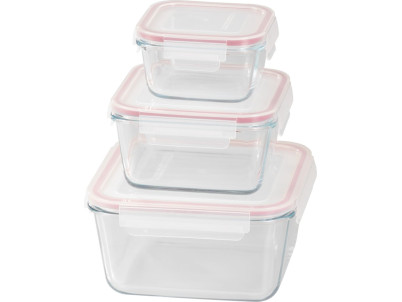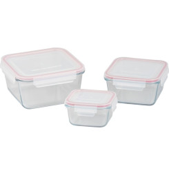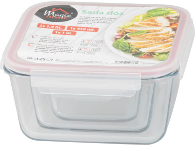 Dóza MagicHome, sada 3 ks, sklenená, sklo, štvorcová, s vekom, 450/1000/1900 ml