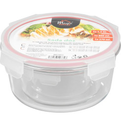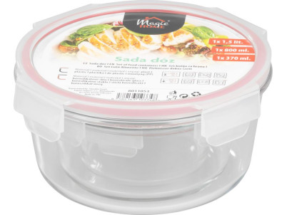 Dóza MagicHome, sada 3 ks, sklenená, sklo, okrúhla, s vekom, 370/800/1500 ml