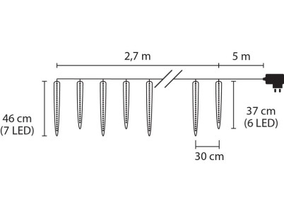 Reťaz MagicHome Vianoce Icicle, 65x LED ľadovo modrá, 8 funkcií, 230 V, 50 Hz, IP44, exteriér, osvetlenie, L-2,70 m