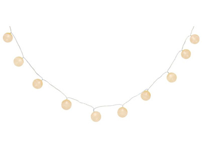 Reťaz MagicHome Cotton Balls White, 10x LED teplá biela, PE/bavlna, 2xAA, jednoduché svietenie, osvetlenie, L-1,35 m