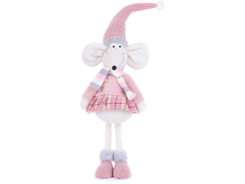 Postavička MagicHome Vianoce, Myš dievčatko, ružová, látková, 19x17x59 cm