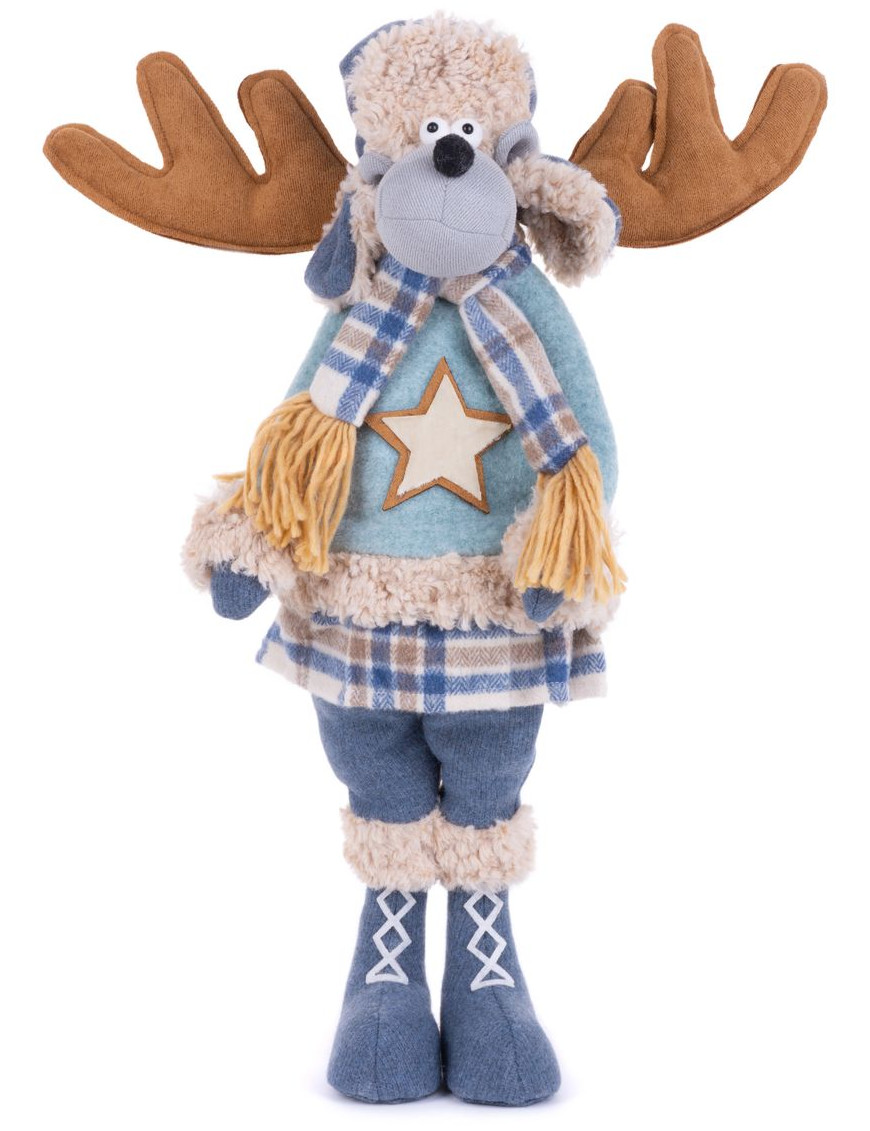 Postavička MagicHome Vianoce, Sob dievčatko v modrom svetri, látkový, 24x18x55 cm
