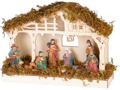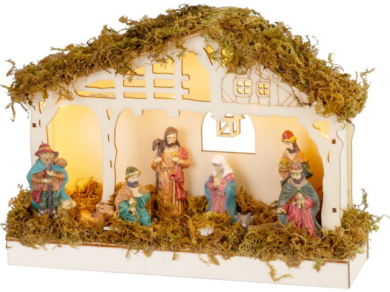 Dekorácia MagicHome Vianoce, betlehem, 5x LED teplá biela, 3xAA, interiér, 26,3x7,3x19,2 cm