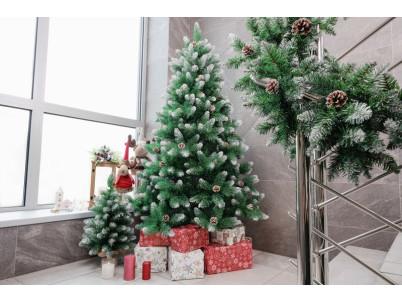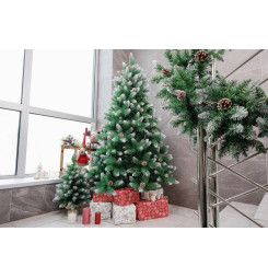 Stromček MagicHome Vianoce Albero, jedľa, zasnežené konce, so šiškami, 180 cm