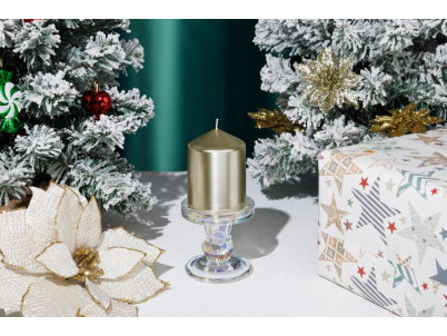 Sviečka MagicHome Vianoce, 7x10 cm, valcová, šampaň, metalický efekt