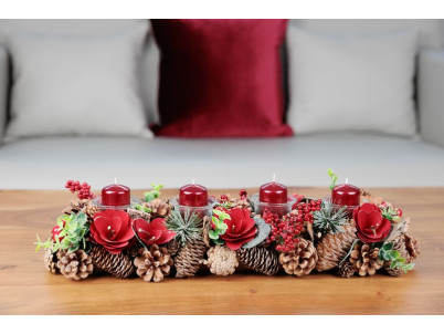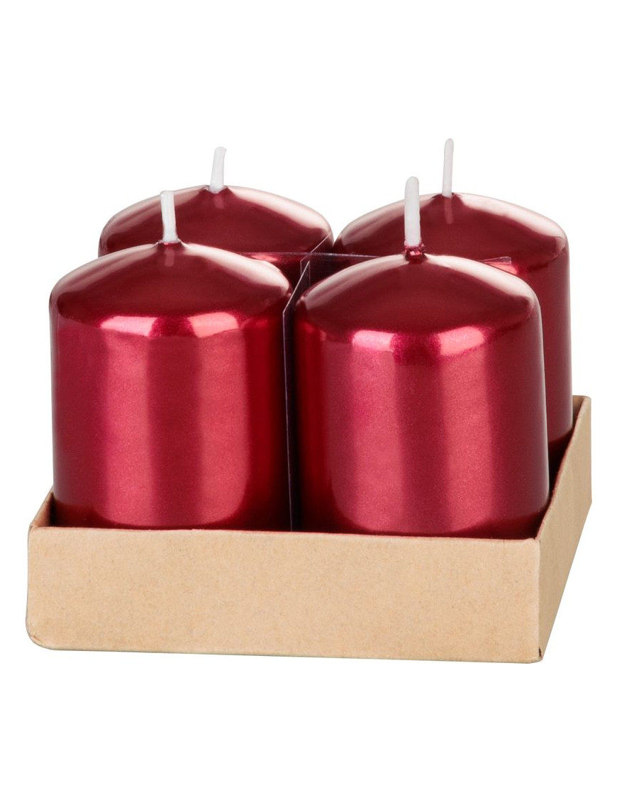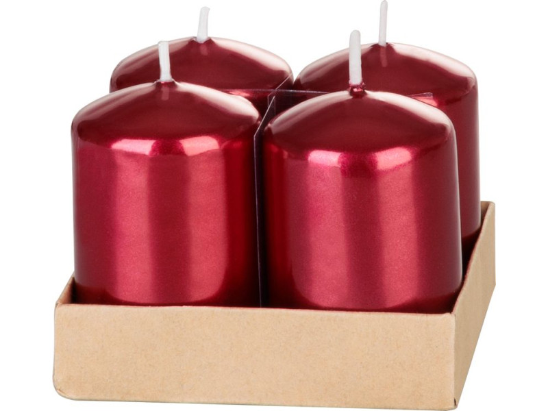 Sviečka MagicHome Vianoce, 4x6 cm, valcová, bal. 4 ks, červená, metalický efekt, adventná
