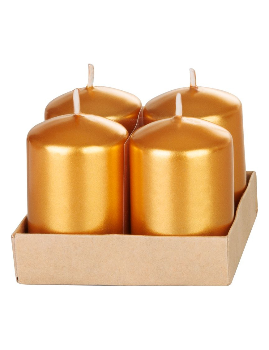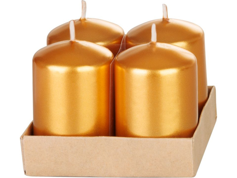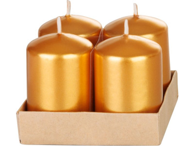 Sviečka MagicHome Vianoce, 4x6 cm, valcová, bal. 4 ks, zlatá, metalický efekt, adventná