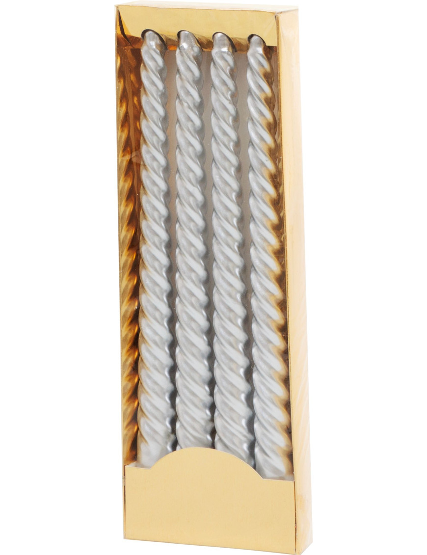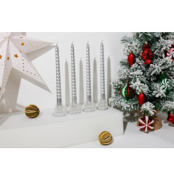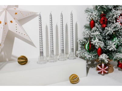 Sviečka MagicHome Vianoce, 25 cm, bal. 4 ks, strieborná, špirálová, točená