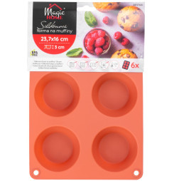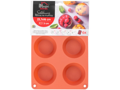 Forma MagicHome, na pečenie, na 6 muffinov, silikón, červená, 23,7x16x3 cm