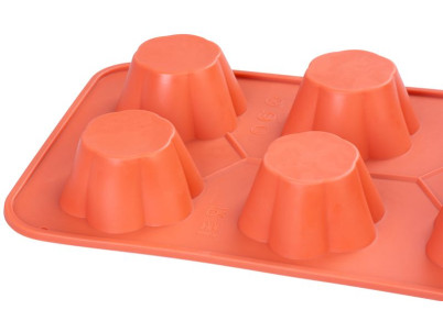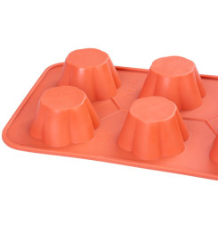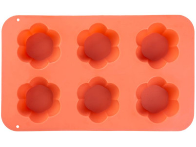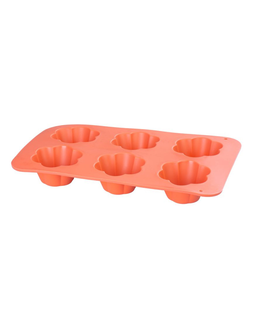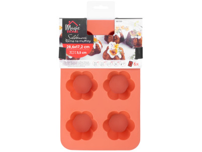 Forma MagicHome, na pečenie, na 6 muffinov, silikón, vzor kvet, červená, 28,6x17,2 cm