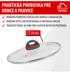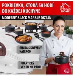Pokrievka MagicHome Black Marble Line, sklenená, 24 cm