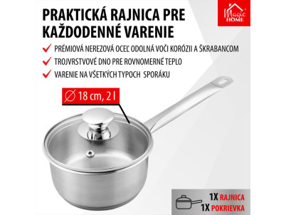 Rajnica MagicHome Chloe, 18 cm, 2 lit. so sklenenou pokrievkou, nerez