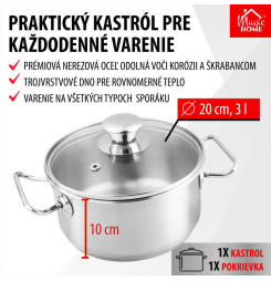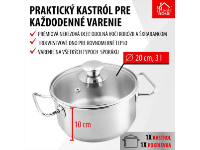 Kastról MagicHome Chloe, hrniec, 20 cm, 3 lit., so sklenenou pokrievkou, nerez