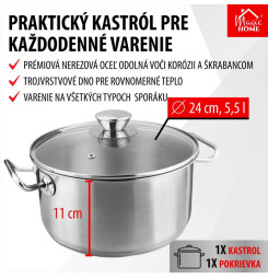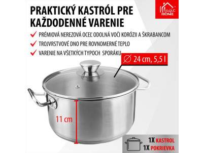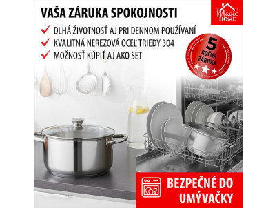 Kastról MagicHome Chloe, hrniec, 24 cm, 5,5 lit., so sklenenou pokrievkou, nerez