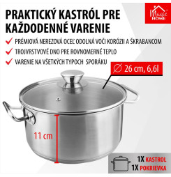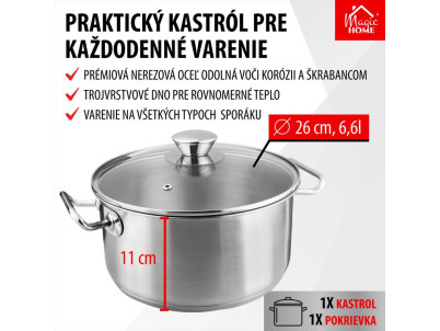 Kastról MagicHome Chloe, hrniec, 26 cm, 6,6 lit., so sklenenou pokrievkou, nerez