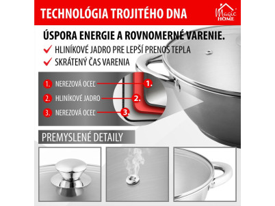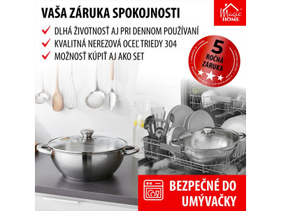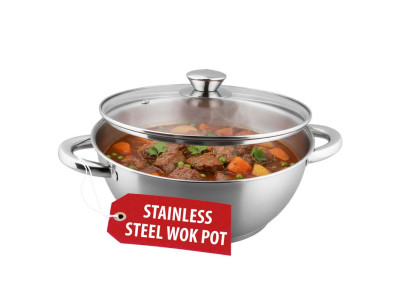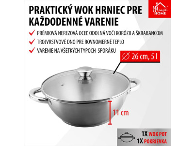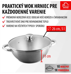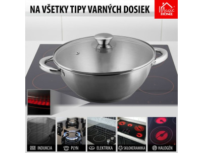 Hrniec Wok MagicHome Chloe, 26 cm, 5 lit., so sklenenou pokrievkou, nerez