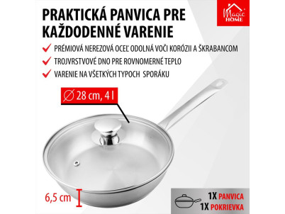 Panvica MagicHome Chloe, 28 cm, 4 lit.,so sklenenou pokrievkou, nerez