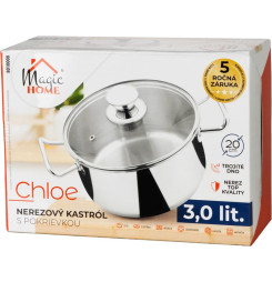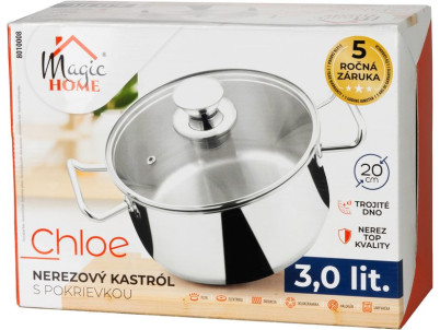 Kastról MagicHome Chloe, hrniec, 20 cm, 3 lit., so sklenenou pokrievkou, nerez