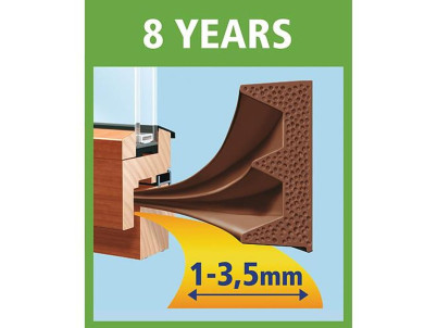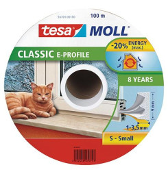 Tesnenie tesamoll® profil E, 9 mm, biele, L-100 m, na okná a dvere, hnedé