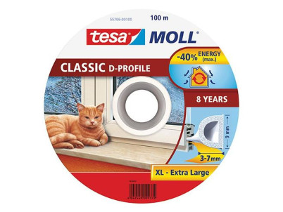 Tesnenie tesamoll® profil D, 9 mm, biele, L-100 m, na okná a dvere
