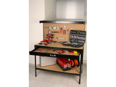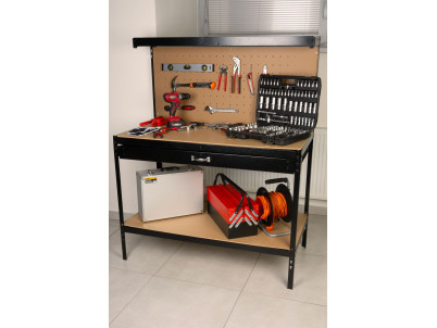 Stôl Racks DWB60, pracovný, do dielne, 1x zásuvka, 120x60x150 cm, max. 230 kg
