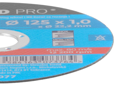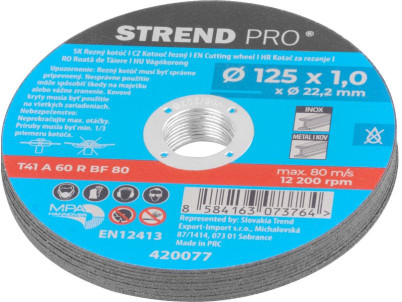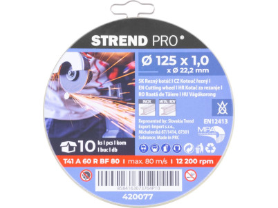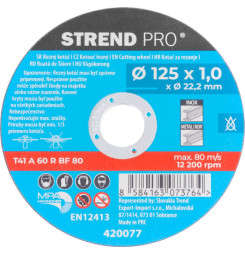 Kotúč Strend Pro 125x1,0x22,2 mm, rezný na kov, dóza, 10 ks