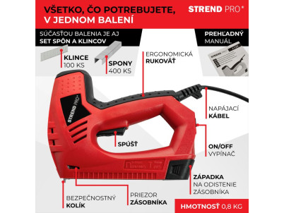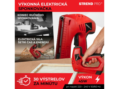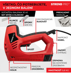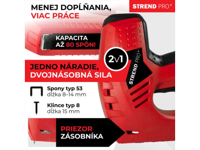 Sponkovačka Strend Pro J-123, elektrická, spony 8-14 mm, klince 15 mm