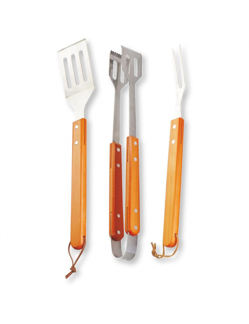 Sada grilovacieho náradia 3 kusy Lopatka, vidlička, kliešte Bambusové rukoväte Nerez Dĺžka 38,5 - 39,5 cm...