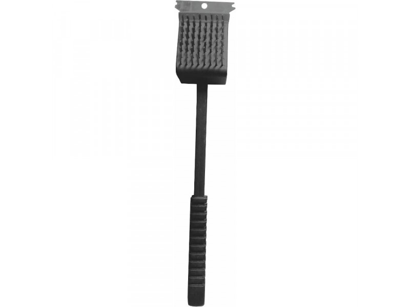 Viacúčelová kefa na čistenie grilov Intuitívna skladba oceľovej kefy, čistiacej brúsnej hubky, škrabky a dĺžky rukoväte zaistí docielenie úspešného vyčistenia roštov a grilu Dĺžka rokoväte 36 cm Oceľová kefa Brúsna hubka Škrabka...