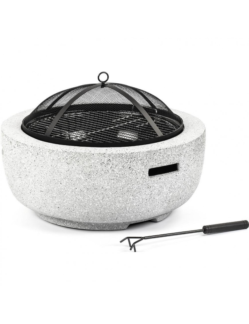 ZÁHRADNÉ OHNISKO Veľkosť ohniska: 60 cm Výška roštu od zeme: 25 cm Chrómový rošt: Ø 43 cm Telo ohniska vyrobené z páleného kameňa MgO Sieťový poklop proti odlietaniu drobných uhlíkov Ohnisko na drevo...