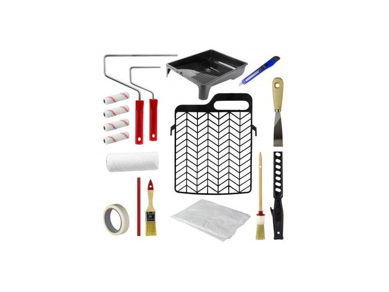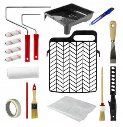 17-dílný set kvalitních malířských válečků, vhodných pro nanášení různých typů barev. fasádních, disperzních, interiérových, latexových a pod. Není určen k nanášení laků.