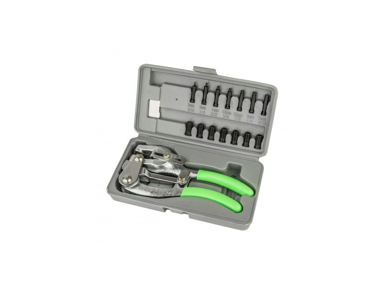 Děrovací kleště pro děrování plechů, pro přípravu šroubových a nýtových spojů. Ideální při karosářských pracích, v kovoprůmyslu, klempířství. Díky různým trnům a matricím je k dispozici široký rozsah využití. Speciální pákový převod umožňuje obsluhu jednou rukou.