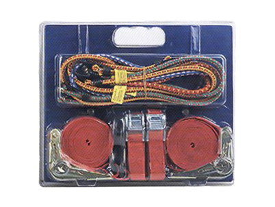 Popruh upínací Strend Pro, 25 mm, L-5 m, max. 250/200/250 kg, bal. 2x pás s račňou + 2x pás so sponou + 8x upínacia guma