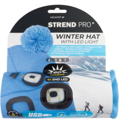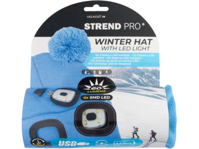 Čiapka Strend Pro kid modrá M, s brmbolcami, 4x SMD LED, USB nabíjanie
