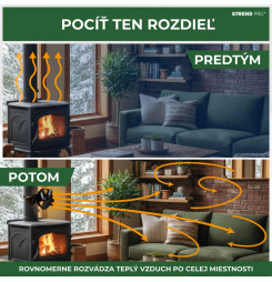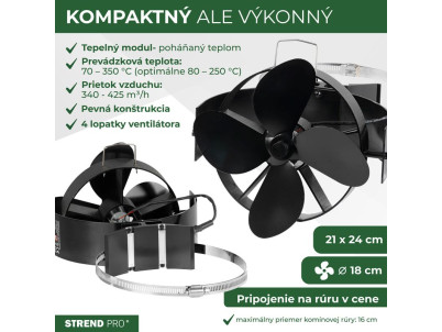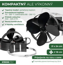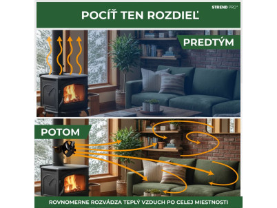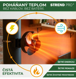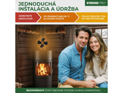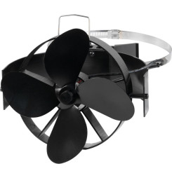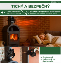 Ventilátor Strend Pro, krbový, s úchytom na dymovod a magnetom, poháňaný teplom, 4-lopatkový, čierny