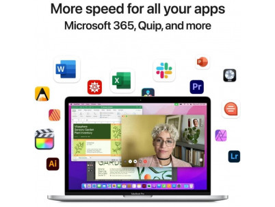 MacBook Pro 13 Touch Bar s procesorom Apple M2. 13.3" IPS Retina displej 2560 × 1600 bodov s technológiou True Tone a širokým farebným rozsahom (P3), 8 jadrový procesor Apple M2, 10 jadrové GPU, 16 jadrový Neural Engine, 8 GB RAM, disk 512 GB SSD, Wi-Fi ax, Bluetooth / USB 4, kamera FaceTime HD, Touch ID, Force Touch trackpad, klávesnica Magic Keyboard, hliníková konštrukcia, operačný systém macOS. Slovenská klávesnica.