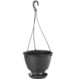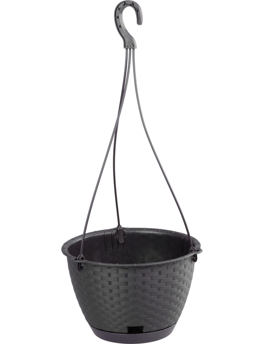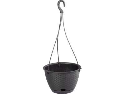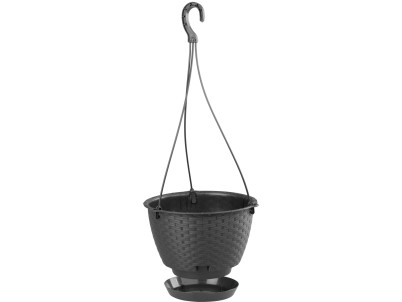 Kvetináč RATOLLA Round W 240, visiaci, hnedý, s podložkou, závesný, s vešiakom