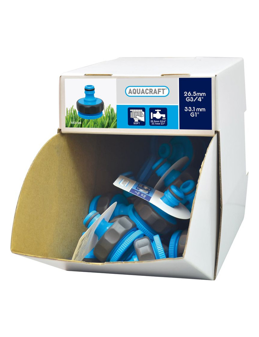 Adaptér AQUACRAFT® 552195 SoftTouch G1"-3/4", na záhradnú hadicu, Sellbox 70 ks