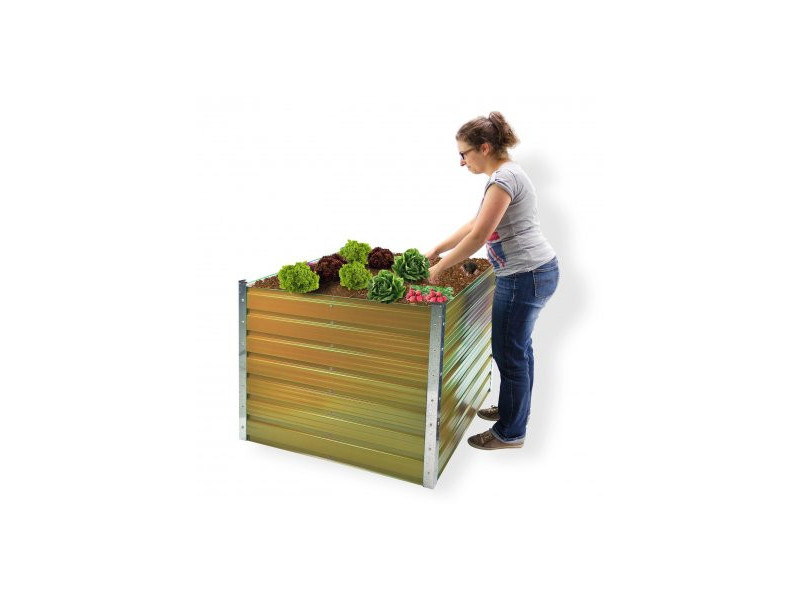 Vysoký záhon kompletně vyrobený z pozinkovaného kovu. Lze umístit na půdu nebo na tvrdý podklad (se středovou výztuhou), snadná montáž. Dodává se v demontovaném stavu. Lze použít i jako kompostér.